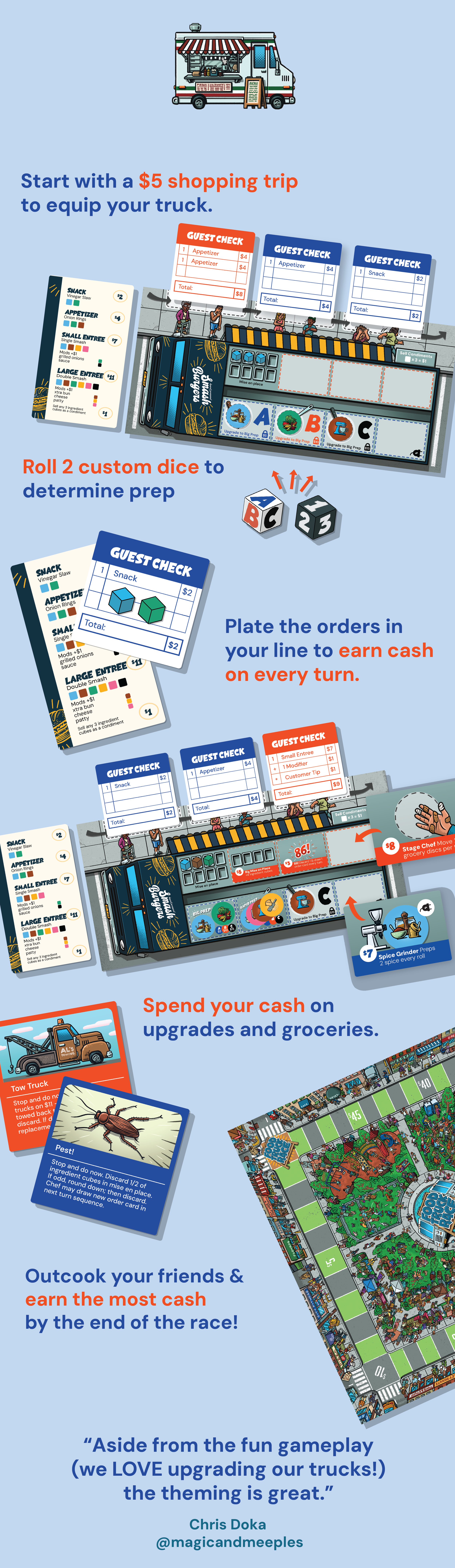 Action-packed gameplay awaits you & up to 6 chefs. Buy groceries, prep ingredients, plate orders, and dodge meter maids and tow trucks on your way to victory!
